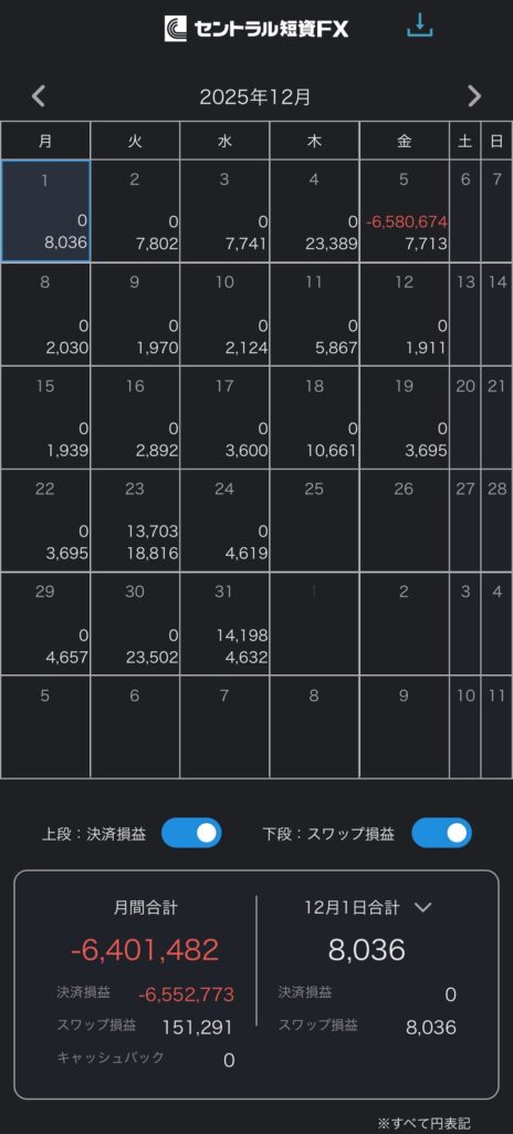 🏦 セントラル短資FX|手動リピート売買の12月成果