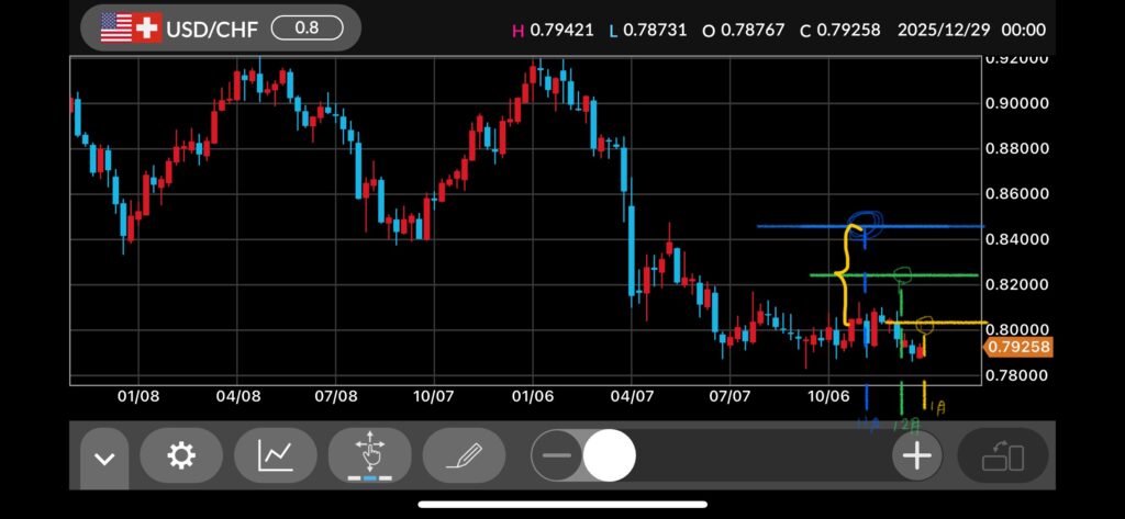 ドルフランはスワップが高いのが魅力。”ポジションシフト戦略”を念頭に、平均取得レートを下げて引き続きスワップももらいます。